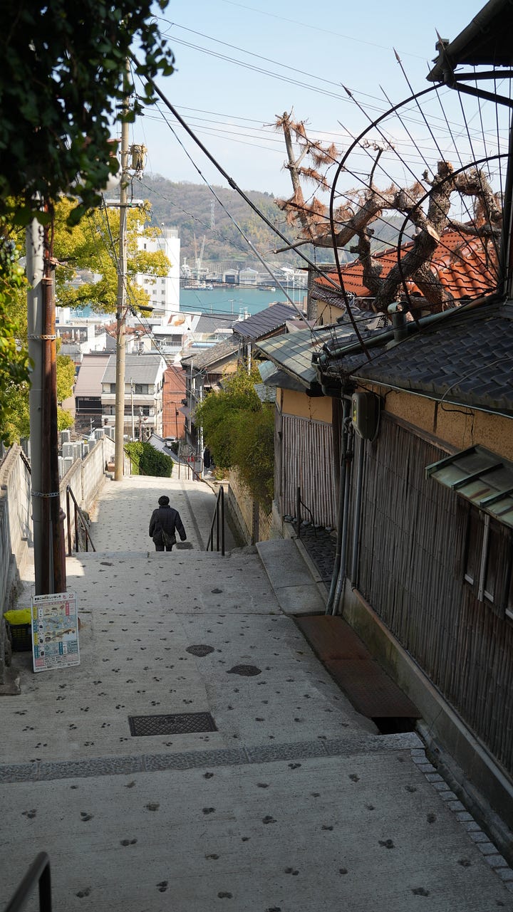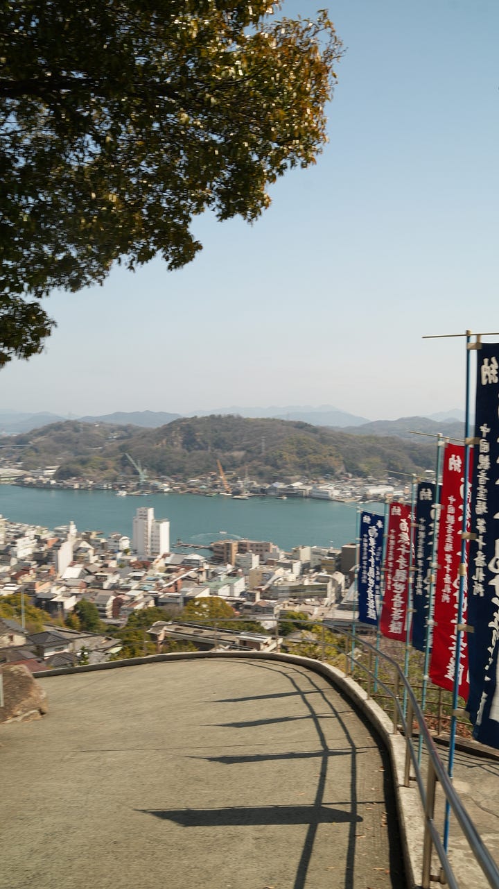 Today I am in Onomichi, a very, very pretty and cute town. It’s full of culture and shrines, and also of stairs. I was already exhausted from these past days and this town has destroyed me even further. I only did stuff here from 12 to 3pm, and then just rested for tomorrow. I am a bit sick, and my foot’s past injury is acting up. Great conditions for my 45 km bike ride tomorrow.