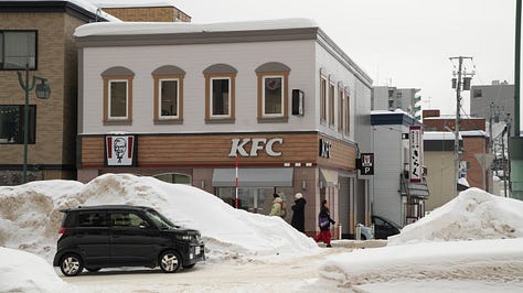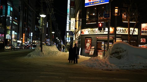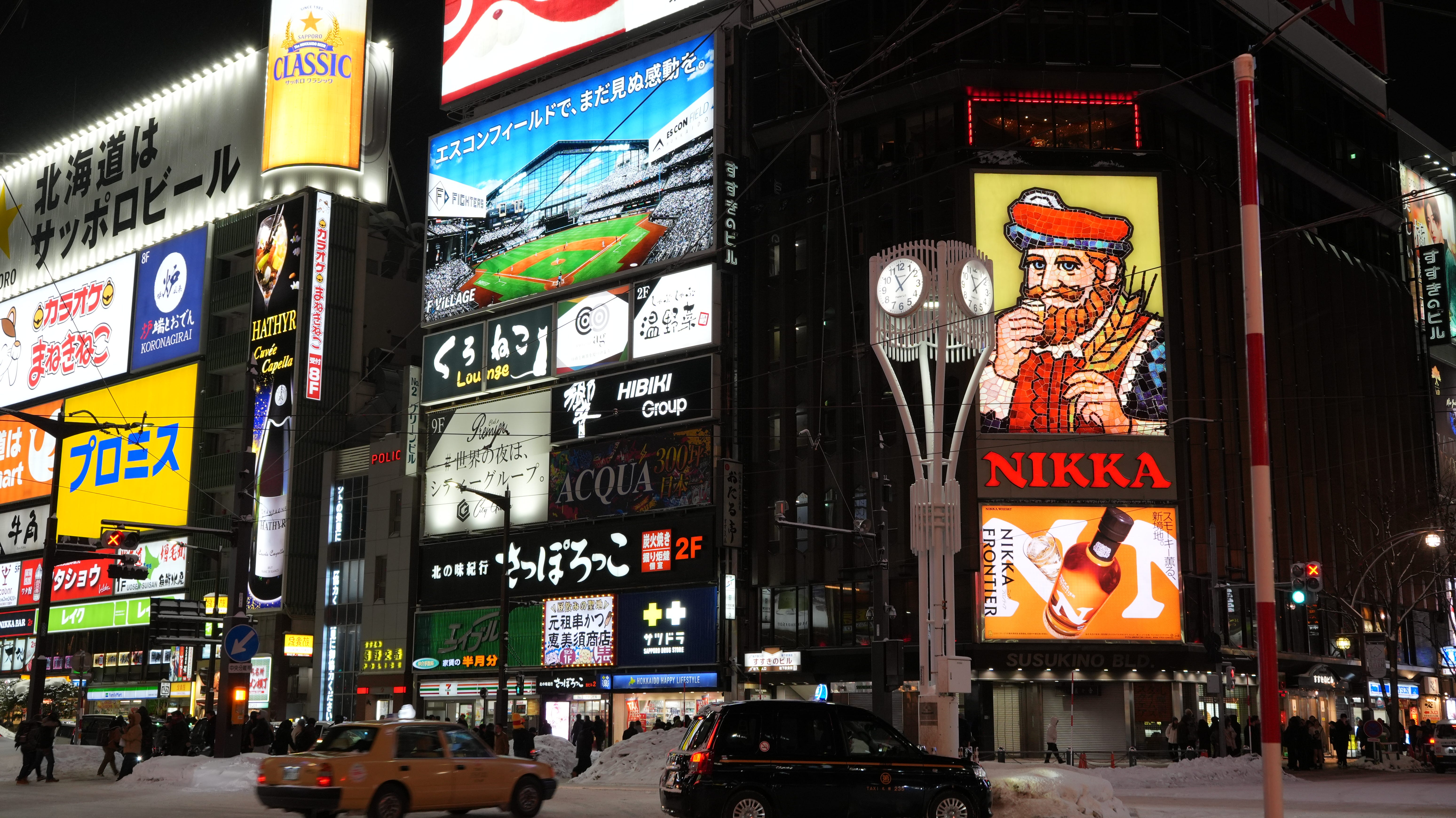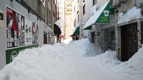 To fight the cold, Sapporo (the capital) has many underground tunnels. I found this incredibly cool. At first, I thought it would only be one underground shopping alley, but it was almost the entire city centre. I could walk in these underground passages around 2-3 subway stops. These passages had their food area, their clothing area, the rest area… Bakeries, restaurants, bathrooms, clothes stores, souvenir stores, shoe stores, book stores, etc. Not only that, but many stores of these underground tunnels were the underground floor of bigger buildings or shopping centres. So, you could take the stairs from these parts of the underground tunnels and you would already be inside a 8-10 stories building. Some were shopping centres, but also offices and some accommodations. It was so cool and efficient. People are not cold, these tunnels are wide so it can take huge amounts of people, they can walk fast, pop-ups and exhibitions can happen without worrying about the weather… An underground city was very cyberpunk of them. Once you go to the surface of Sapporo, cyberpunk would describe it perfectly, too. Buildings are tall and with a lot of lights. Not as modern as the new-wave big cities that exist now like Shenzhen and such, but still very vivid. A bit naughty as well, as there are dozens of host and girls bars. They are not hidden, there are even girls bar guides to help you find the best one. In one of these buildings, there was a 2-3 meters ad with a girl in her underwear on top of a bed telling you to go to her bar. Very foul. The party culture, late-night (until 5 am) ramen and after-work hostess events did set the vibe of the city a bit. The cold makes you feel very awake and when the warmth hits you, you let go.